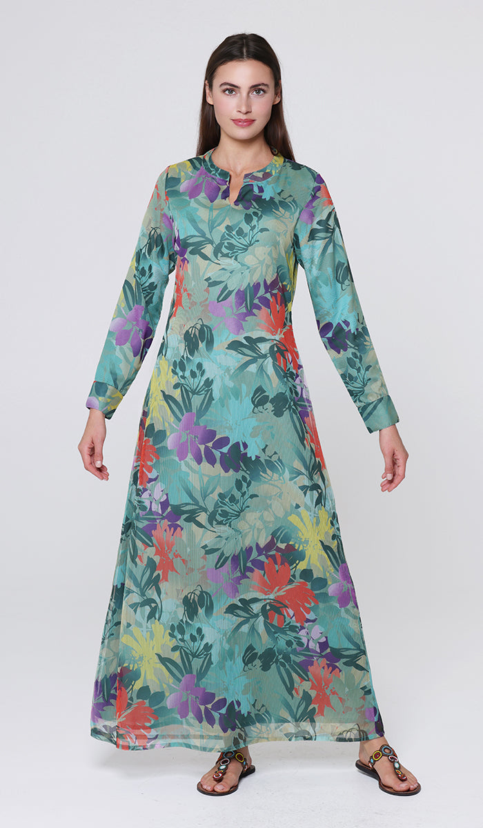 Robe longue longue modeste en mousseline de soie smockée Nadia - Noir