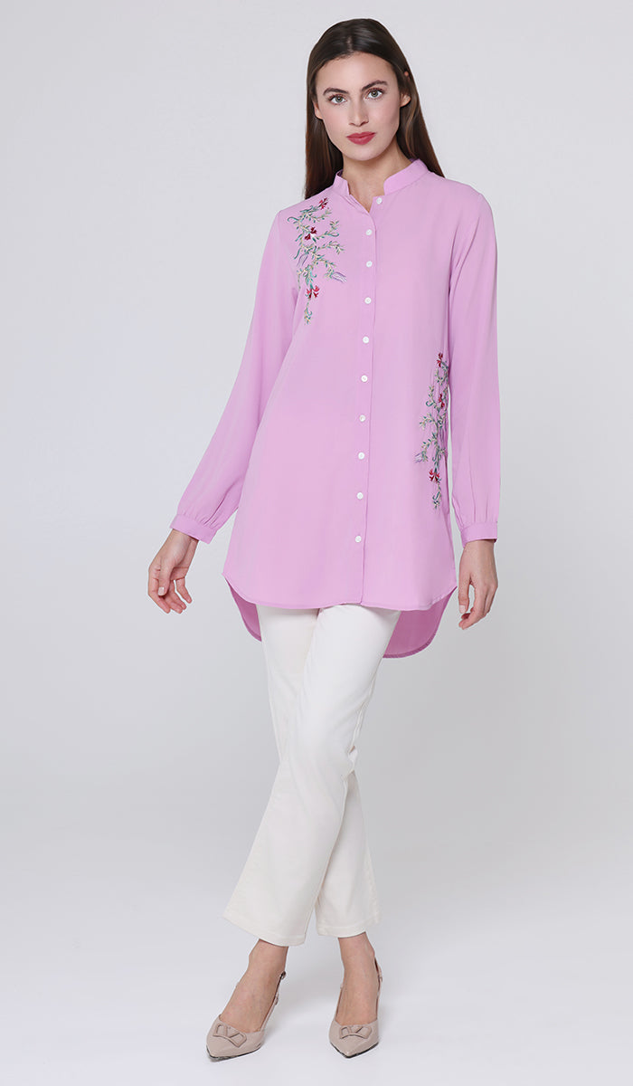 Elif Embroidered Formal Long Modest Tunic - Candy - PREORDER (ships in 2 weeks)