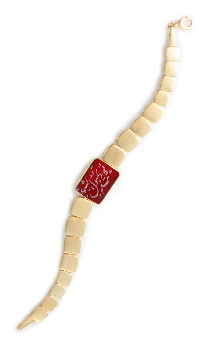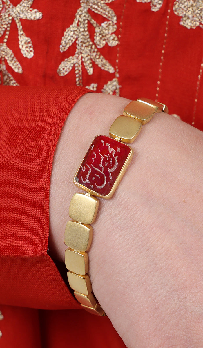 Goldplated Sterling Silver Hand Engraved Aqeeq Bracelet